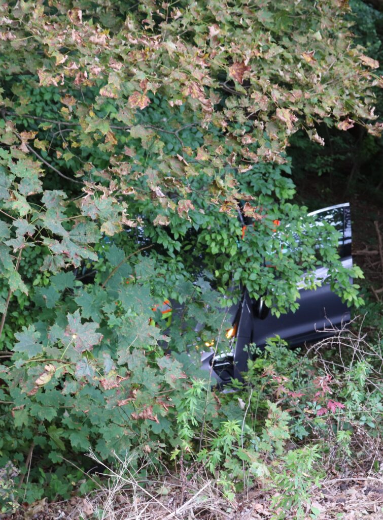 EV Driver Uninjured After Vehicle Goes Over Guardrail, Down Embankment (Tuesday, September 16, 2025)